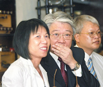 臺灣唯一量產人用甲型H1N1流感疫苗的國光生技昨天舉行記者會,國光生技總經理魏逸之(中)澄清外界對國光產制疫苗的疑慮。 (圖片來源:臺灣《聯合報》)