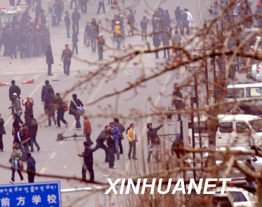 3月14日中午,在拉薩市朵森格路,不法分子在向路邊商鋪、汽車扔石頭。這是一起駭人聽聞的嚴(yán)重暴力犯罪事件。3月14日,一群不法分子在西藏自治區(qū)首府拉薩市區(qū)的主要路段實(shí)施打砸搶燒,焚燒過往車輛,追打過路群眾,沖擊商場(chǎng)、電信營(yíng)業(yè)網(wǎng)點(diǎn)和政府機(jī)關(guān),給當(dāng)?shù)厝嗣袢罕娚?cái)產(chǎn)造成重大損失,使當(dāng)?shù)氐纳鐣?huì)秩序受到了嚴(yán)重破壞。事后查明,這天,不法分子縱火300余處,拉薩908戶商鋪、7所學(xué)校、120間民房、5座醫(yī)院受損,砸毀金融網(wǎng)點(diǎn)10個(gè),至少20處建筑物被燒成廢墟,84輛汽車被毀。有18名無辜群眾被燒死或砍死,受傷群眾達(dá)382人,其中重傷58人。拉薩市直接財(cái)產(chǎn)損失達(dá)24468.789萬元。 這是一場(chǎng)反對(duì)分裂,維護(hù)祖國(guó)統(tǒng)一和民族團(tuán)結(jié)的斗爭(zhēng)。 為了盡快恢復(fù)正常的社會(huì)秩序,西藏自治區(qū)黨委、政府組織公安、武警,對(duì)在拉薩街頭十分猖狂地進(jìn)行打砸搶燒的不法分子依法打擊,迅速平息了事態(tài),維護(hù)了社會(huì)穩(wěn)定,維護(hù)了國(guó)家法制,維護(hù)了西藏各族群眾的根本利益。根據(jù)目前掌握的情況,這起嚴(yán)重的暴力犯罪事件是由達(dá)賴集團(tuán)有組織、有預(yù)謀、精心策劃煽動(dòng)的,是由境內(nèi)外“藏獨(dú)”分裂勢(shì)力相互勾結(jié)制造的。 新華社記者 格桑達(dá)瓦 攝