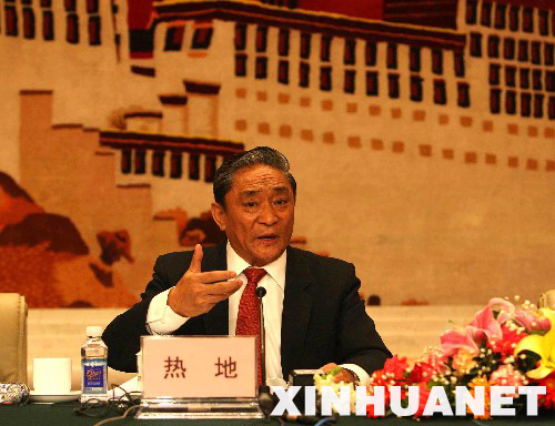 3月19日,十屆全國人大常委會副委員長、西藏自治區(qū)發(fā)展咨詢委員會名譽主任熱地在當(dāng)天召開的第二屆西藏自治區(qū)發(fā)展咨詢委員會第一次會議上說,目前,拉薩局勢已基本平穩(wěn),社會秩序已恢復(fù)正常。熱地強調(diào):“西藏的發(fā)展在任何時候都必須以穩(wěn)定為前提,沒有穩(wěn)定就沒有發(fā)展,就沒有西藏各族人民的幸福生活,就沒有西藏美好的明天。西藏的發(fā)展穩(wěn)定不容破壞。” 新華社記者 邢廣利 攝