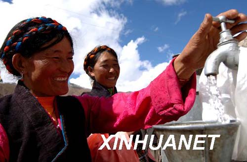 資料圖片:西藏貢嘎縣朗杰雪鄉(xiāng)農(nóng)民用上了清潔的自來水(2006年9月攝)。近五年來,西藏爭取國家投資7億多元,建設農(nóng)村飲水工程5877處,解決了102萬多人的飲水困難和飲水安全問題。新華社記者 索朗羅布 攝