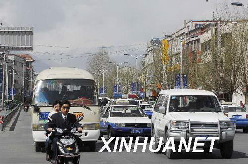 車輛行駛在拉薩北京中路上。新華社記者 普布扎西 攝