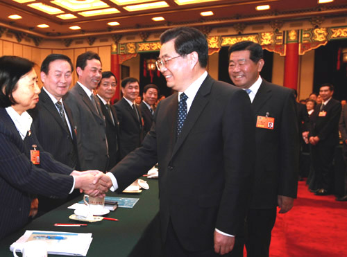 胡錦濤在看望參加全國政協(xié)會議民革臺盟臺聯(lián)委員時強(qiáng)調(diào)