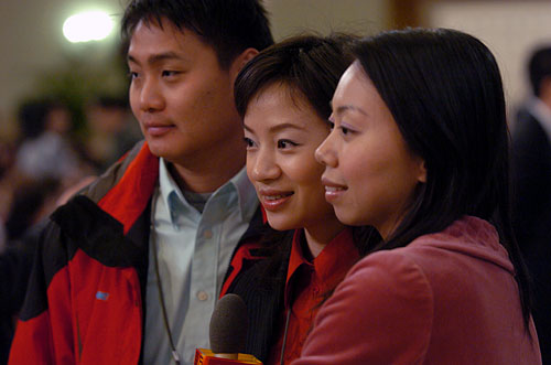 3月18日上午十一屆全國人大一次會議閉幕后,國務(wù)院總理溫家寶在人民大會堂三樓中央大廳與采訪十一屆全國人大一次會議的中外記者見面并回答記者提出的問題。圖為記者們在合影。新華網(wǎng) 陳競超 攝