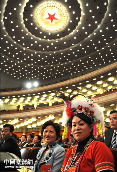 3月5日,十一屆人大開幕當(dāng)天,臺灣代表從轎車上魚貫而下,陳軍一身套裝,并不見預(yù)想中的高山族服飾。直到進(jìn)入人民大會堂,她才換上民族裝。低調(diào),是這位新代表留給媒體的普遍印象。