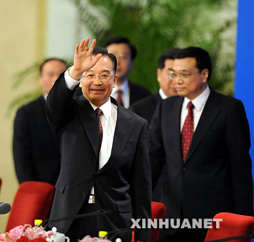 3月18日,國務(wù)院總理溫家寶和副總理李克強、回良玉、張德江、王岐山在北京人民大會堂與中外記者見面,并回答記者提問。 新華社記者李學(xué)仁攝