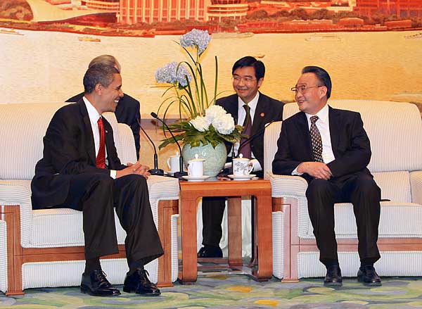 外交部長楊潔篪、全國人大外事委員會主任委員李肇星、中國駐美國大使周文重等參加會見。