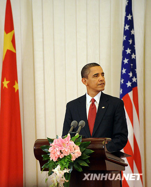 11月17日,中國國家主席胡錦濤和美國總統奧巴馬在北京人民大會堂共同會見中外記者。新華社記者李學仁攝