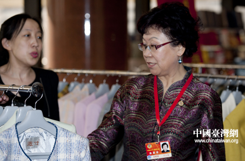 面對服裝行業日新月異的變革,“造寸”服飾依然延續著用料考究,手藝精湛,做工細巧的特點占據著服裝市場的一席之地。憑借“造寸”的優良傳統并不懈的追求創新發展,已經得到廣大消費者的認可。如今的“造寸”服飾同時承擔國家領導人 出席重要政治,外交活動的著裝需要。在兩會上“造寸”服飾也不缺乏顧客。圖為全國政協委員劉公勤在“造寸”服飾前觀看。圖為全國政協委員劉公勤在“造寸”服飾前觀看。(記者肖春陽 閆文攝影報道)