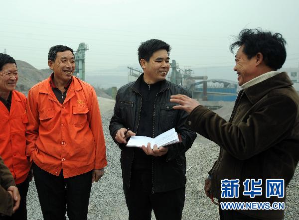 康厚明(右二)在與幾位農民工交流(2月22日攝)。作為農民工代表,康厚明在參加的歷次全國“兩會”中,提交的議案一直都聚焦在為農民工爭取勞動權益,獲得身份尊嚴上。康厚明說自己外出打工30多年完成從“農民—農民工—新市民”的轉型,就是為了不斷追求更好的、有尊嚴的生活。康厚明對記者說,今年“兩會”期間,我的目光還是更多地放在關注我們農民工的生存、生活狀況等方面,希望我們農民工的收入隨著社會的發展一步步得到提高。新華社記者 周衡義攝