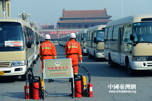中國(guó)臺(tái)灣網(wǎng)3月9日北京消息 全國(guó)“兩會(huì)”期間,在天安門(mén)廣場(chǎng)看到,一輛輛排列整齊的大巴車(chē)穿著耀眼的金色外衣雄赳赳、氣昂昂地整裝待發(fā),象列隊(duì)等待檢閱的士兵一般威武。記者登上一輛大巴車(chē),看到座套全部是新?lián)Q的,整輛車(chē)打掃得一塵不染,車(chē)廂內(nèi)還能聞到淡淡的水果香味,暖暖的陽(yáng)光透過(guò)車(chē)窗照進(jìn)來(lái),一切都顯得那么溫馨。司機(jī)劉德清師傅告訴記者,他是北京出租汽車(chē)旅游客運(yùn)分公司的一名司機(jī),接到保障兩會(huì)的任務(wù)后,他多次對(duì)車(chē)輛進(jìn)行維護(hù)保養(yǎng),里里外外把車(chē)擦了好幾遍。