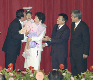 歡迎午宴感人一幕 陳云林慈愛親吻早產(chǎn)兒陳喻安