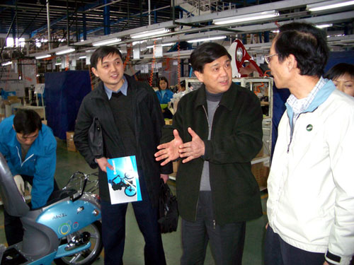 2005年3月,四川省臺辦劉俊杰主任(中)視察臺資企業(資料圖片)