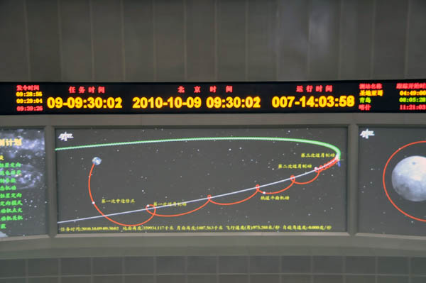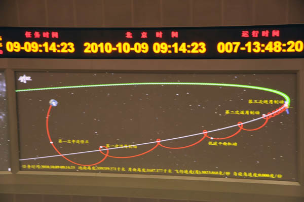 北京飛控10月9日將對(duì)嫦娥二號(hào)衛(wèi)星進(jìn)行第三次近月制動(dòng),確保衛(wèi)星順利進(jìn)入高度為100公里的環(huán)月圓軌道。圖為衛(wèi)星運(yùn)行示意圖。新華網(wǎng) 孫瑞博攝