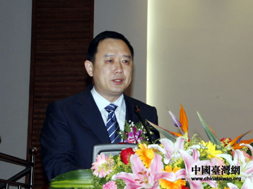 廣西玉林市委書記、市人大常委會主任金湘軍在“海峽兩岸農(nóng)業(yè)合作研討會”開幕式上致辭。(攝影:鐘寶華)