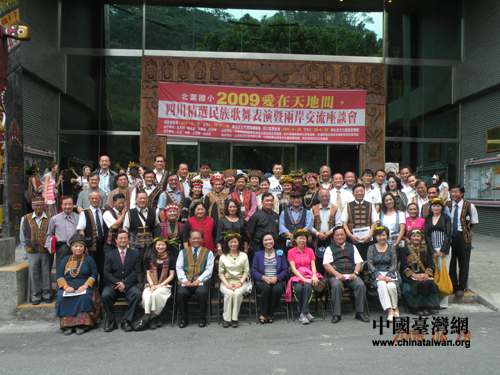 下午,交流團與臺灣原住民團隊進行了聯歡,臺灣原住民14個族群舞蹈款款而出,踏歌起舞。生動地表現了原住民獨特的勞動、生活情形;四川藏、羌、彝族歌舞各具特色、奔放自如,展現了一幅幅馳騁草原、狂歡火把節的多彩畫面。
