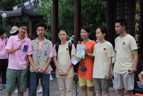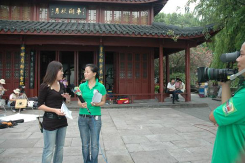中國臺灣網7月22日杭州消息 2009年7月22日上午,浙江電視臺民生休閑頻道與臺灣TVBS電視臺合作在杭州平湖秋月全程直播了千載難遇的日全食現象,來自浙臺兩地的60余名師生在直播現場也攜手共賞了此次難得的天文奇觀。