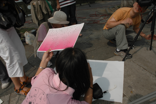 臺灣老師展示針孔觀測法。