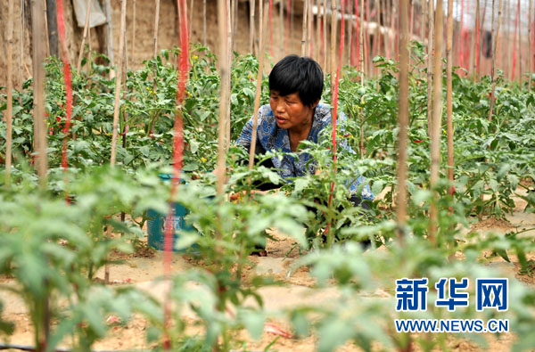 6月25日,山西聞喜縣上鎮村村民在蔬菜大棚內勞作。
