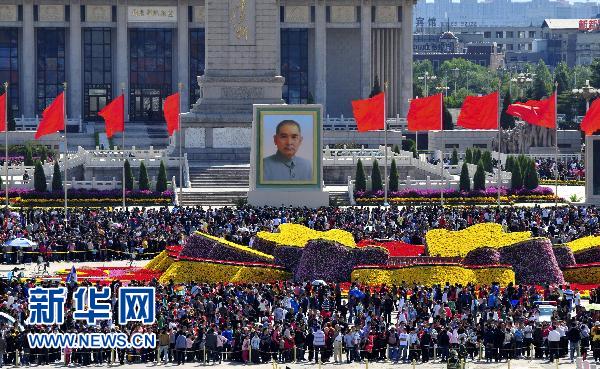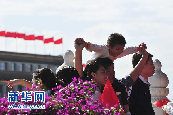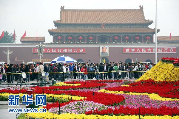 10月2日,游客在北京天安門(mén)廣場(chǎng)游覽。新華社發(fā)(樊甲山 攝)