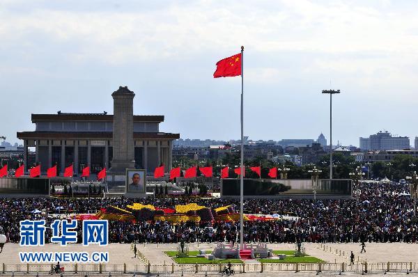 10月2日,游客在北京天安門(mén)廣場(chǎng)游覽。當(dāng)日,北京天氣晴好,天安門(mén)、故宮地區(qū)迎來(lái)如潮的游人。 新華社發(fā)(陳柏材 攝)