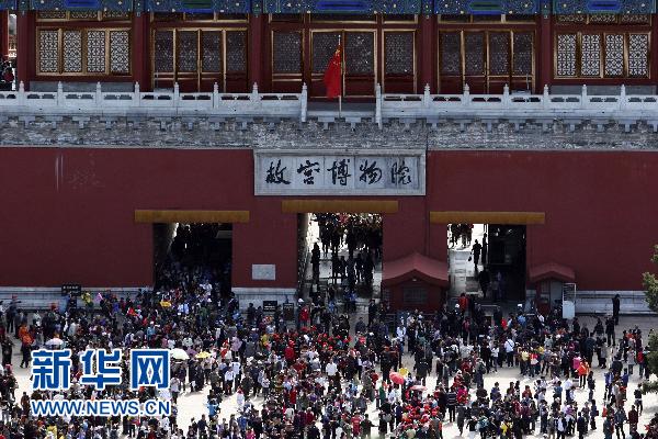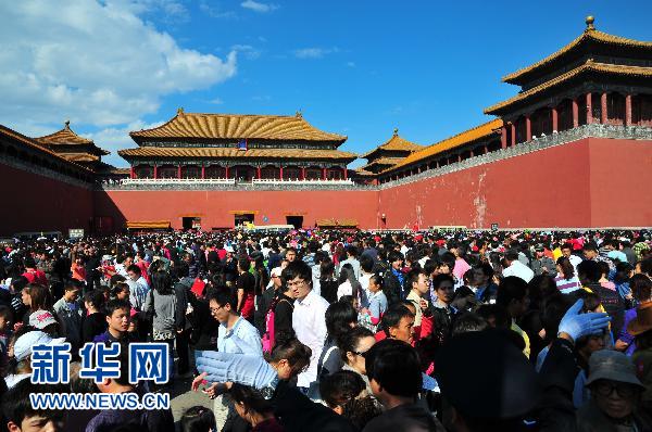 10月2日,北京故宮北門(mén)廣場(chǎng)游人如織。新華社發(fā)