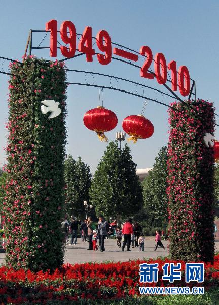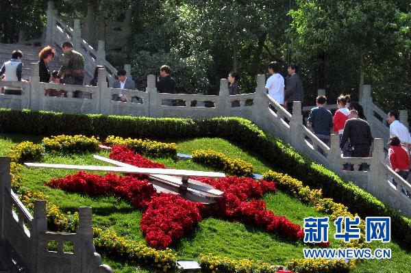 這是鄭州一個休閑廣場上的一座“國慶”主題花壇(10月3日攝)。國慶長假期間,在河南省鄭州市的休閑廣場、街心花園和道路兩旁,由500萬盆各色鮮花組成的花壇、花廊、花圃,猶如一幅幅優(yōu)美、和諧的立體風景畫,扮靚了節(jié)日的鄭州。新華社記者王頌攝