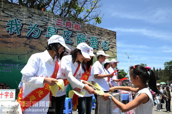 在云南大理白族自治州一年一度的傳統(tǒng)節(jié)日“三月街”慶典活動中,大理白族自治州不少部門積極倡導(dǎo)“愛心助抗旱”募捐活動,號召干部群眾為旱區(qū)獻(xiàn)愛心,所籌善款將用于大理旱情嚴(yán)重的山鄉(xiāng)。
