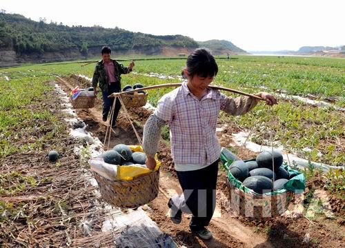 老區群眾搶收受旱西瓜