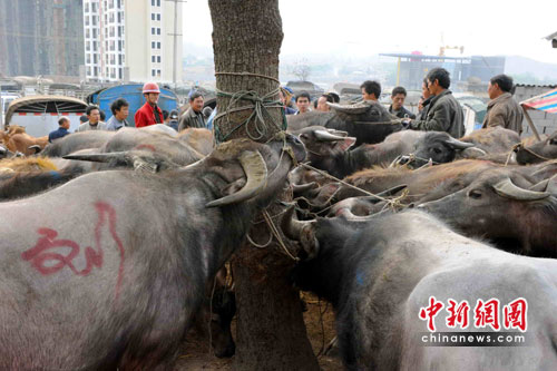 秦大章夫婦看上了馮元達一頭不到兩歲的小牛,“沒換牙齒、蹄也不錯。”秦大章很內(nèi)行的告訴記者。在此后近30分鐘的時間里,一場在2300元至1900元人民幣之間的價錢拉鋸戰(zhàn)進行起來。最終,在周邊人的撮合下,秦大章以2010元的價錢買到了他看上的小牛。