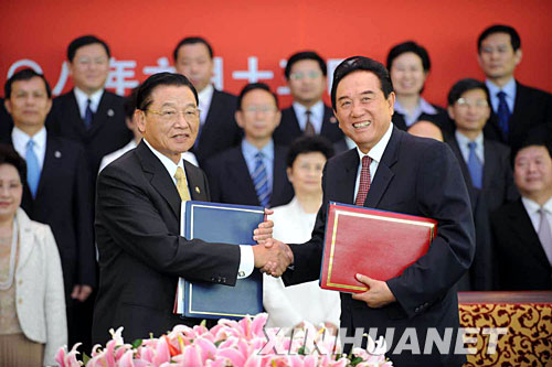 12日,海協(xié)會(huì)會(huì)長陳云林與海基會(huì)董事長江丙坤進(jìn)行會(huì)談,這是兩會(huì)領(lǐng)導(dǎo)人10年來的首次會(huì)談,標(biāo)志著中斷近10年的兩會(huì)制度化協(xié)商正式恢復(fù)。