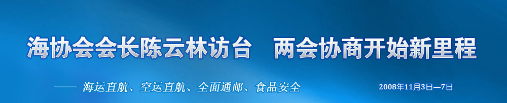 2008年11月3日,海協(xié)會會長陳云林率團訪臺,兩會最高領(lǐng)導(dǎo)人將在臺北進行會談,協(xié)商兩岸海運直航、空運直航、郵政合作、食品安全等議題并簽署協(xié)議,還將就兩會下輪協(xié)商議題安排、加強兩會聯(lián)系與交流等問題交換意見、做出規(guī)劃。