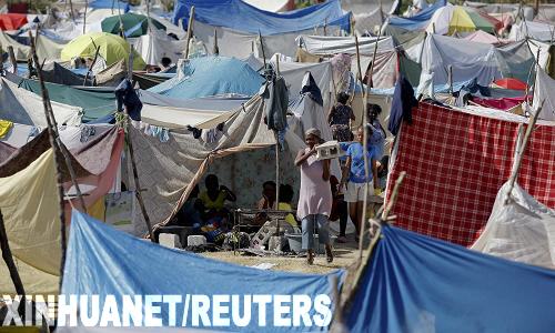 1月18日,海地災民在首都太子港一些臨時搭建的帳篷內休息。據海地有關官員介紹,海地地震災區從18日開始設立約280個緊急救助中心,向災民分發救災物資和提供臨時住所。新華社/路透