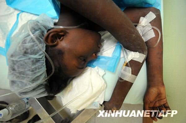 1月20日,海地11歲的女孩薩農在首都太子港一家醫院里接受治療。新華社/法新