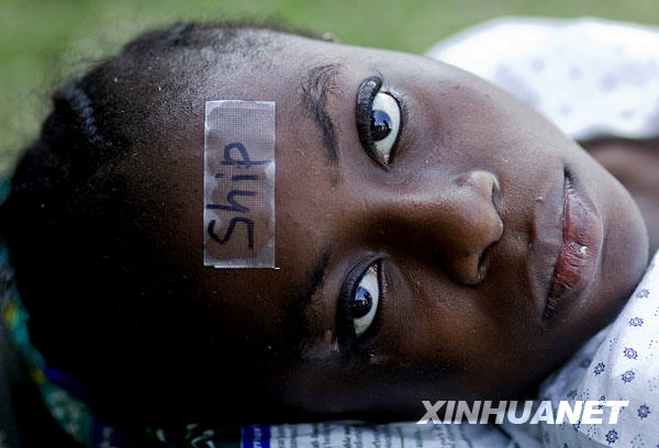 1月21日,在海地首都太子港,一名在地震中受傷的兒童等待轉院。