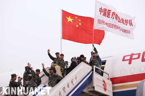 當日,由中國人民解放軍醫護人員和管理人員組成的中國醫療防疫救護隊,乘坐民航包機飛離北京,前往海地執行人道主義救援任務。新華社記者 陳建力 攝
