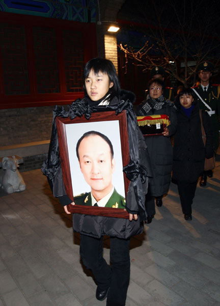 然而天妒英才,上蒼嫉妒我擁有你這樣疼愛我的好爸爸,嫉妒媽媽擁有你這樣的好丈夫,嫉妒奶奶擁有你這樣的好兒子!你可曾記得出征前,你說過如果有傷亡,那第一個一定是你!我曾怨你,說這樣不吉利的話,我曾怨你這樣不顧我和媽媽……但我也知道現在的你無怨無悔,你一生轟轟烈烈,雖然你沒有盡孝,但你是中國人民的好兒子,盡管你還沒看到丫頭長大成人,你還沒有和媽媽白頭偕老,你還沒有讓奶奶爺爺換上新房.但是現在,爸爸,我們所有人,不怪你,不怨你,因為你是為維護世界和平而犧牲的,你的死,重于泰山。你是我們全家的驕傲,是我們的榜樣,是我們前進的動力!