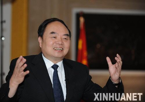 這是教育部部長周濟在接受記者采訪(8月17日攝) 新華社記者 丁林 攝