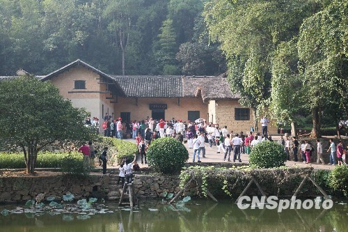 10月1日,新中國成立60周年之日,前來韶山毛澤東故居參觀的游客絡(luò)繹不絕。 中新社發(fā) 白祖偕 攝