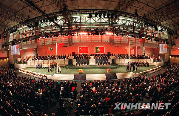 1999年12月19日午夜至20日凌晨,中葡兩國政府澳門政權(quán)交接儀式在澳門隆重舉行,中國對澳門恢復(fù)行使主權(quán)。新華社發(fā)