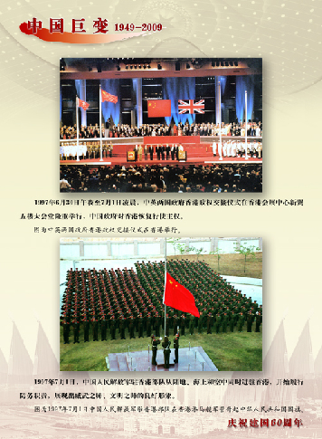 60載風雨歷程,60載壯麗詩篇。新中國成立以來,中國共產(chǎn)黨領(lǐng)導和團結(jié)海內(nèi)外中華兒女,以創(chuàng)造性的大戰(zhàn)略,推動祖國統(tǒng)一進程邁出歷史性的大步伐:香港、澳門順利回歸,中華民族洗刷百年屈辱,“一國兩制”偉大構(gòu)想成功實踐;兩岸關(guān)系從隔絕、對峙走向交流、對話,排除各種艱難險阻,掀開和平發(fā)展的歷史新頁……