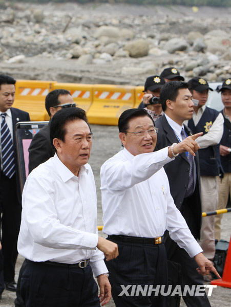 12月24日,海協(xié)會會長陳云林(前左)率海協(xié)會協(xié)商代表團部分成員赴南投縣水里鄉(xiāng)新山村,考察“八八水災”災區(qū)。