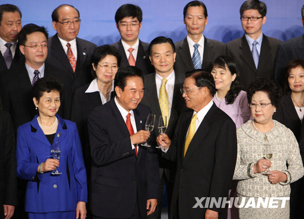 這是海協會會長陳云林(前左二)與海基會董事長江丙坤相互敬酒祝賀。新華社記者 袁滿攝