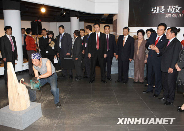 當(dāng)日,剛剛結(jié)束兩會(huì)第四次領(lǐng)導(dǎo)人會(huì)談的海協(xié)會(huì)會(huì)長(zhǎng)陳云林在海基會(huì)董事長(zhǎng)江丙坤的陪同下,在苗栗縣參觀三義木雕博物館。新華社記者 袁滿 攝