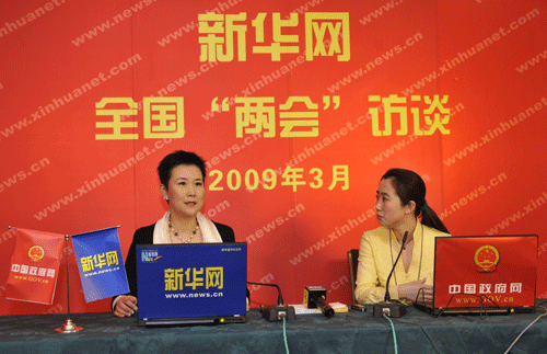2009年3月3日,中國人民政治協商會議第十一屆全國委員會第二次會議在北京人民大會堂開幕。圖為全國政協委員李小琳在開幕前做客新華網、中國政府網設在大會堂的訪談直播間。陳濤 攝
