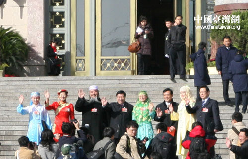 全國人大代表在北京人民大會堂前留影。