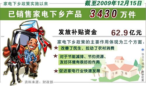 圖表:截至2009年12月15日已銷售家電下鄉產品3430萬件新華社發
