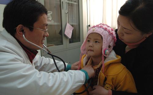 2009年12月1日,合肥市廬陽區亳州路街道社區衛生服務中心的醫生在給一名小患者看病。從12月開始,安徽在全省32個縣(市、區)實施基層醫藥衛生體制綜合改革試點,以徹底取消“以藥補醫”,實行藥品零差率銷售。此次改革試點的范圍包括社區衛生服務機構、鄉鎮衛生院及其一體化管理的行政村衛生室。新華社記者劉軍喜 攝