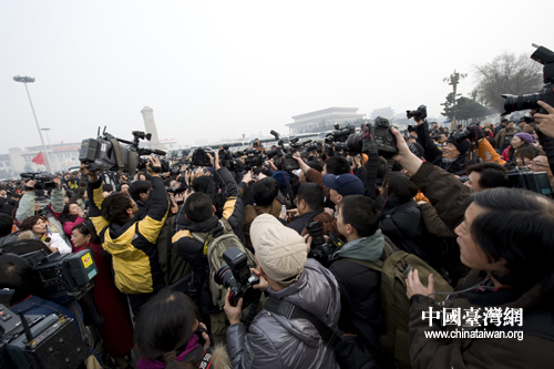 政協會開幕式劉翔成為記者圍堵的熱點,由于去年政協會上很多記者苦苦沒有等到劉翔的身影,當3月3日下午政協會開幕前劉翔一出現時,就被記者圍得里三層外三層,慌亂中有的記者還被踩掉了鞋子。(中國臺灣網發 肖春陽、劉洋攝影報道)