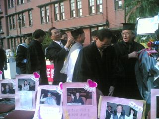 報道說,在歌聲中,臺灣地區第6屆“立委”在12月21日臺“立法院”第6會期停會的這一天“畢業了”,“立委”們穿著學士服、頭戴學士帽在議場的中庭拍起畢業照,臺“立法院長”王金平還親自為每位“立委”撥穗,顯得有點離情依依。“立委”侯水盛說,感覺真的輕松多了,因為當“立委”的生活質量很差,但也有所收獲,總之畢業后就放空了。
