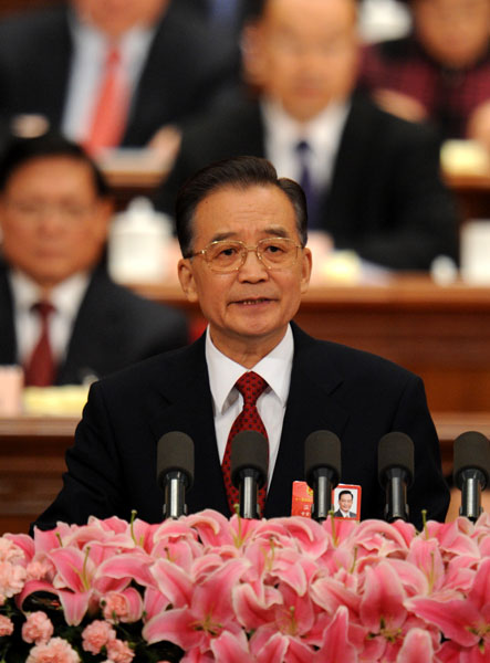 3月5日,第十一屆全國人民代表大會第二次會議在北京人民大會堂開幕。國務院總理溫家寶作政府工作報告。新華社記者劉建生攝